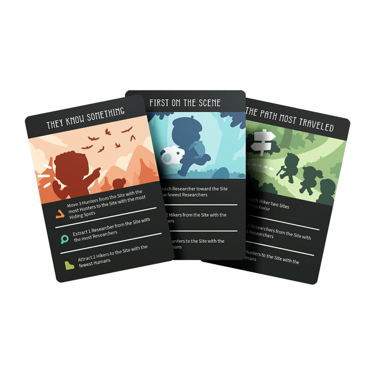 In Cryptid, players choose a Cryptid with unique powers and hiding spots and use Action cards to determine the affects if their are spotted. Players also Hidden Trait cards to get objective that you’ll try to achieve by the end of the game in order to score bonus Myth.