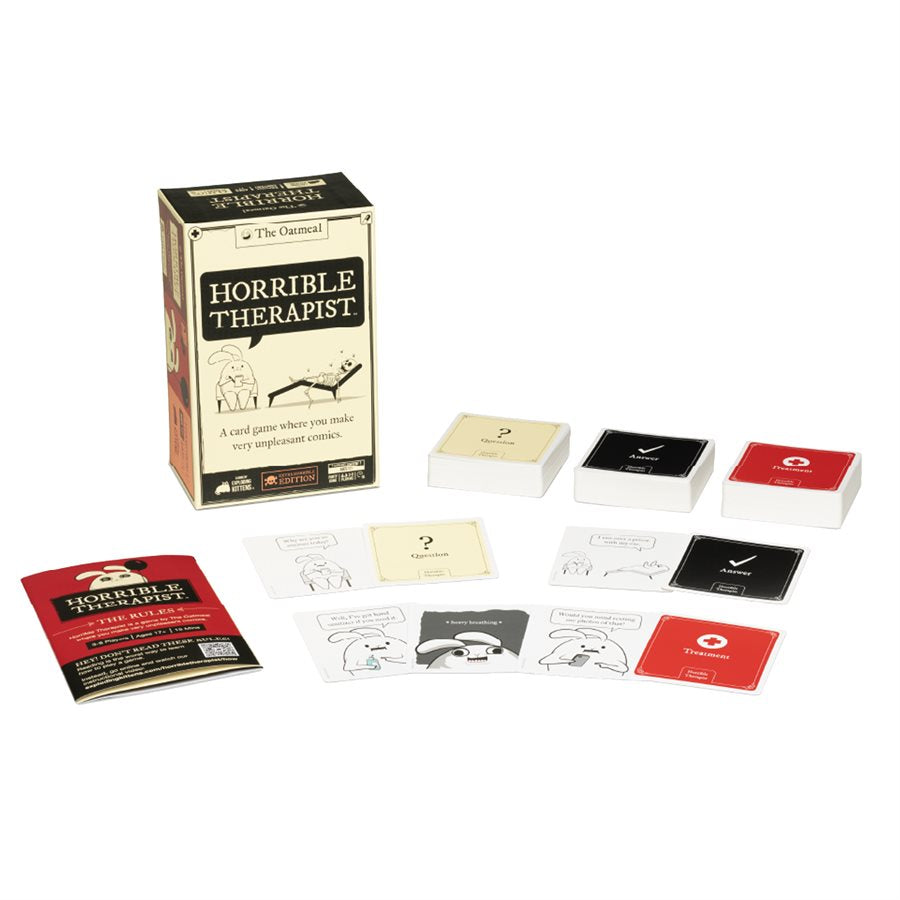 In this adult card game you’ll create a comic about therapy with a Question, Answer, and a Treatment. Whoever puts down the funniest Treatment card wins a point. The first to 3 points wins. It's a fun and hysterical addition to your party card games collection.